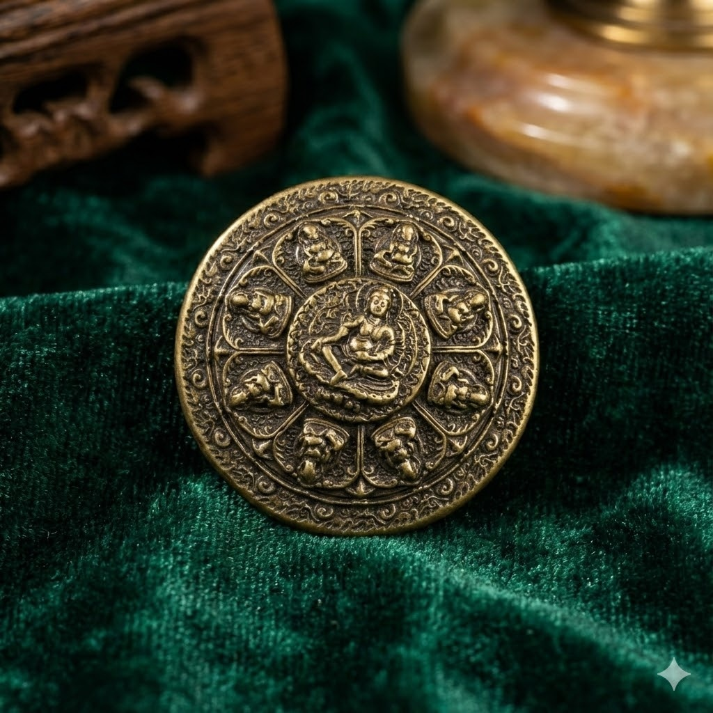 Discover the profound energy of this exquisitely crafted Tibetan Nine-Palace Eight-Trigrams Amulet. Meticulously cast in solid brass with a vintage oxidized finish, this pendant is not just a piece of jewelry, but a portable talisman of protection and balance.
